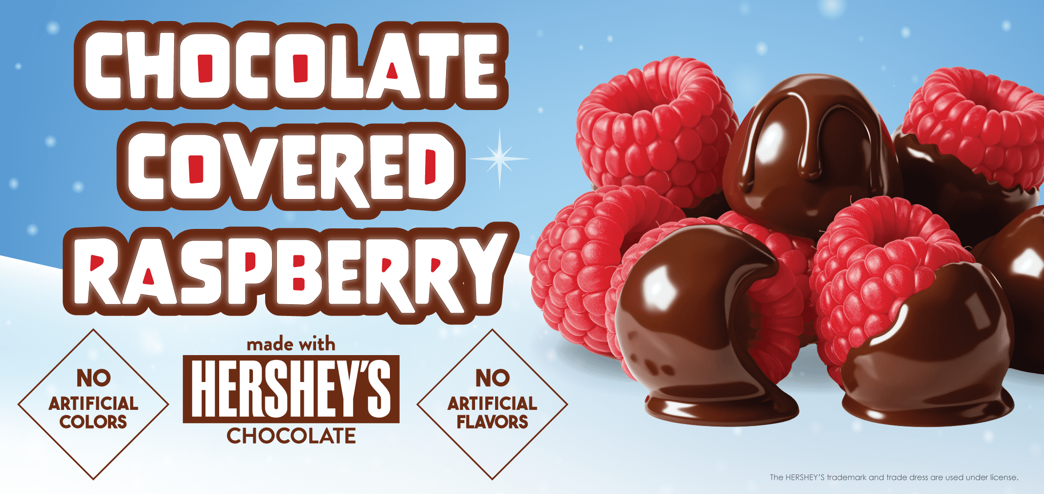 This frozen yogurt is a subtle tangy raspberry covered in a rich semi-sweet Hershey's chocolate.