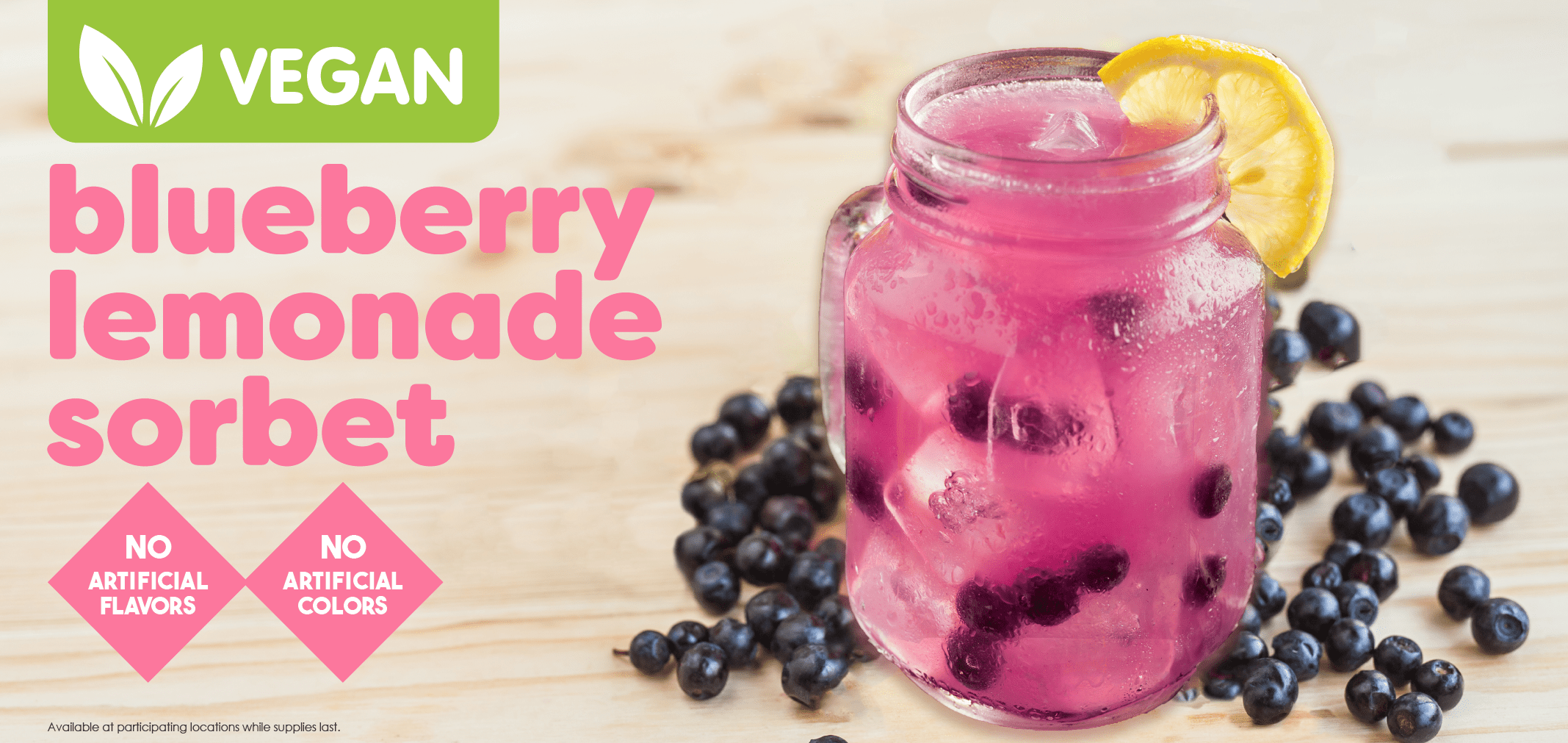 A refreshing, fruity summer sorbet with juicy blueberries and classic lemonade. Starts off sweet and finishes with a tangy kick, perfect for cooling down on a hot day.