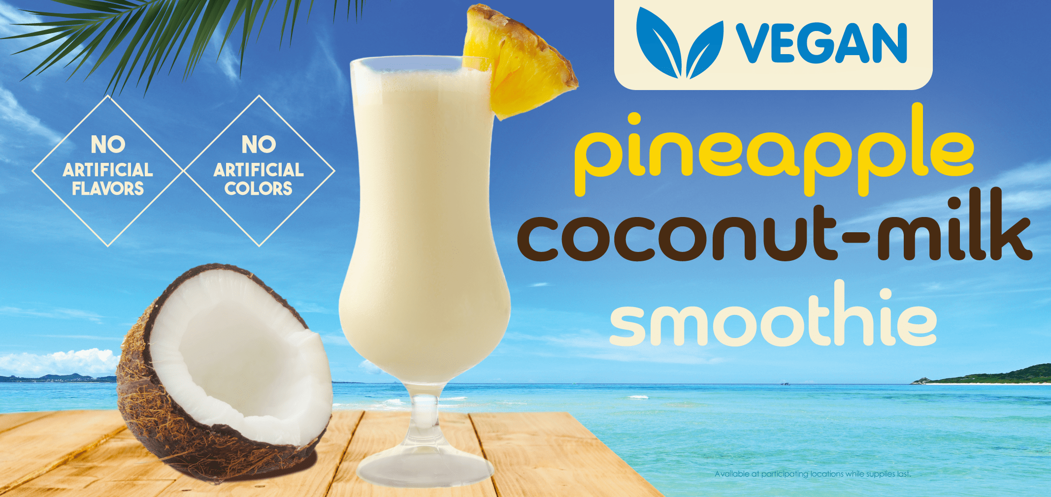 A tropical getaway in a cup! The sweetest, juiciest pineapple meets the richest coconut cream for a flavor that whisks you away to a sun-kissed island.