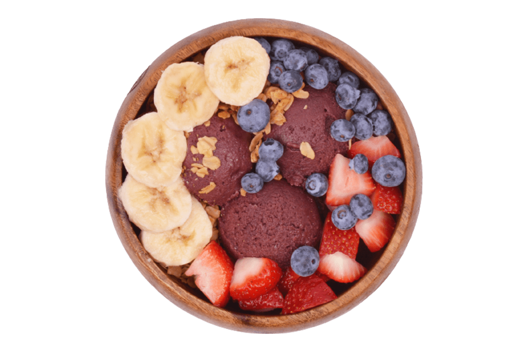 Açaí, Granola, Strawberries, Blueberries, Bananas